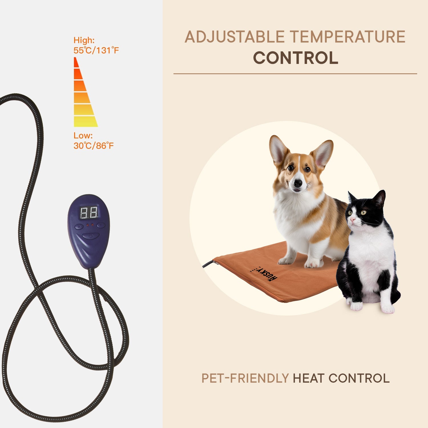 Customize warmth levels with precise temperature settings from 30°C to 55°C. The easy-to-use controller lets you find the perfect heat level for your pet's comfort and safety needs.